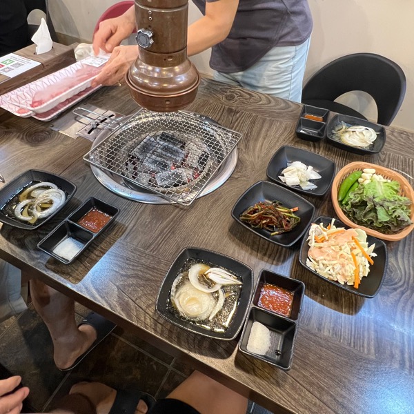 신선한 소고기를 숯불로 구워 먹으니 확실히 맛있었어요.