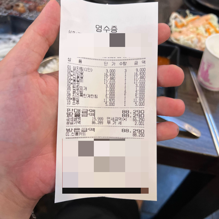 상차림비는 1인 당 3천 원이었어요.